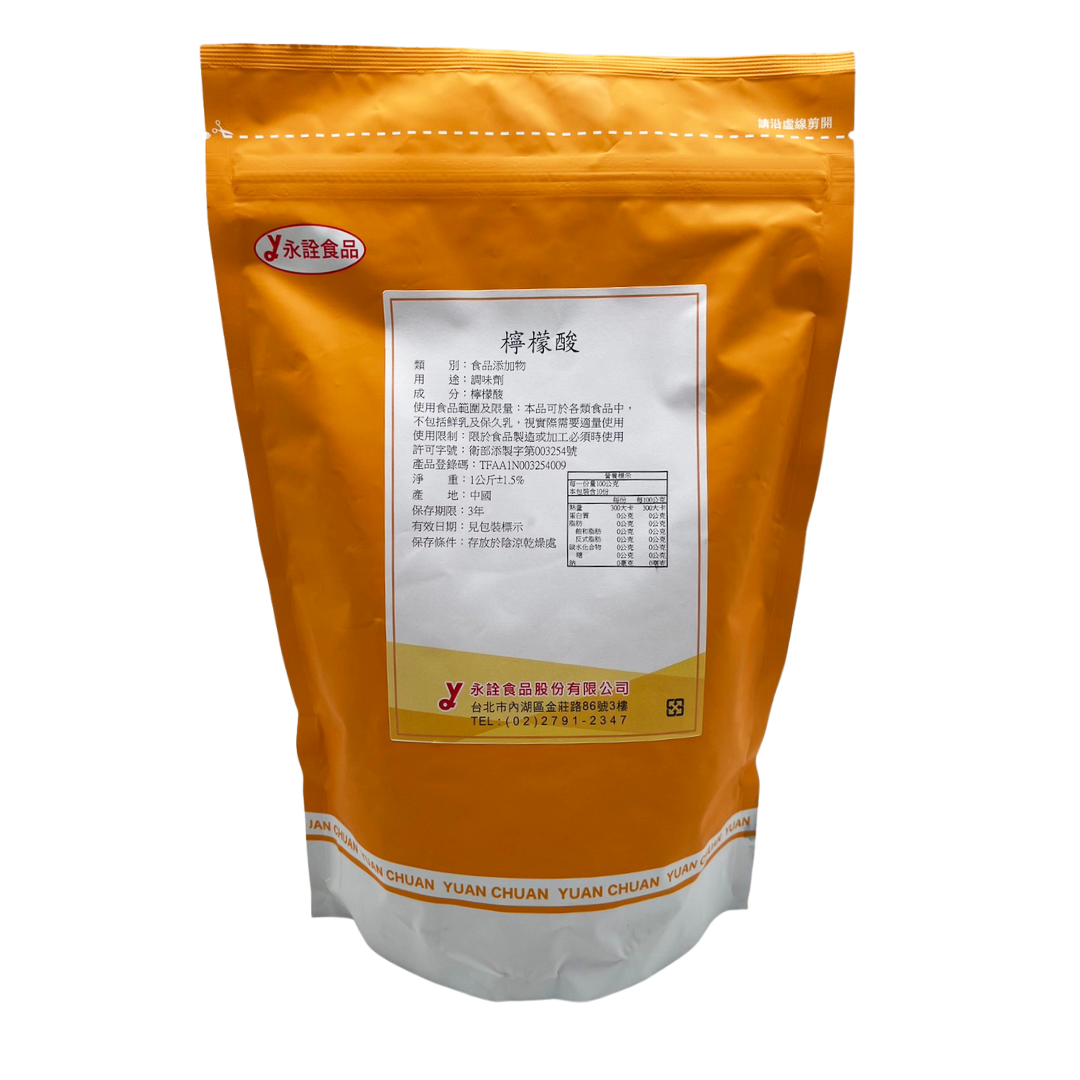 進口優質食品級檸檬酸,可用作於天然防腐劑、食物及飲料的酸味劑和清潔劑。