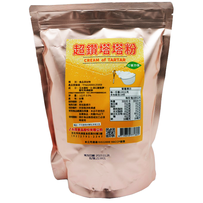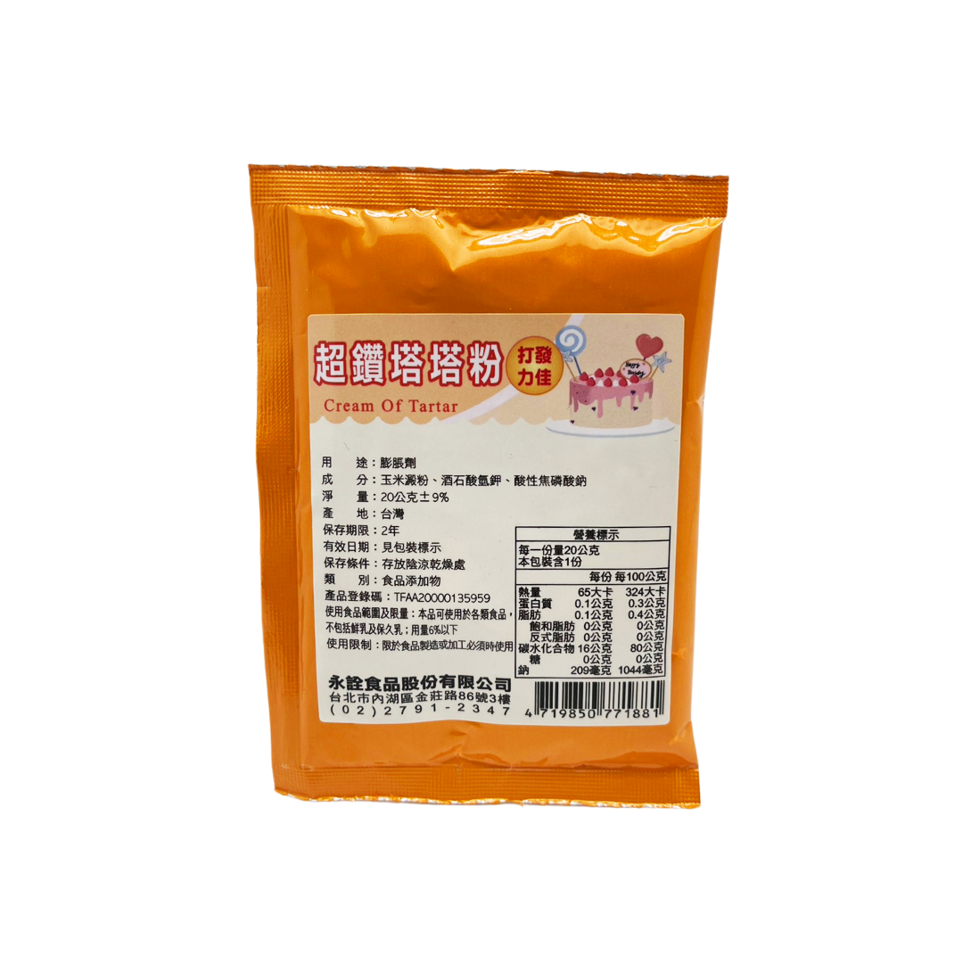 1. 在打發蛋白時加入以平衡蛋白的鹼性,使泡沫潔白穩定,體積較大。 2. 減少蛋白打發後產生的皂味。 3. 可取代因季節而酸度不穩定的檸檬汁(酸化劑),也可避免因使用白醋產生的不良風味。 4. 做糖果或翻糖時加入,可以防止蔗糖結晶。減少蔗糖殘餘澀味和使糖果質地較為柔軟。 5. 製作中式點心時如饅頭、包子可使顏色較白。